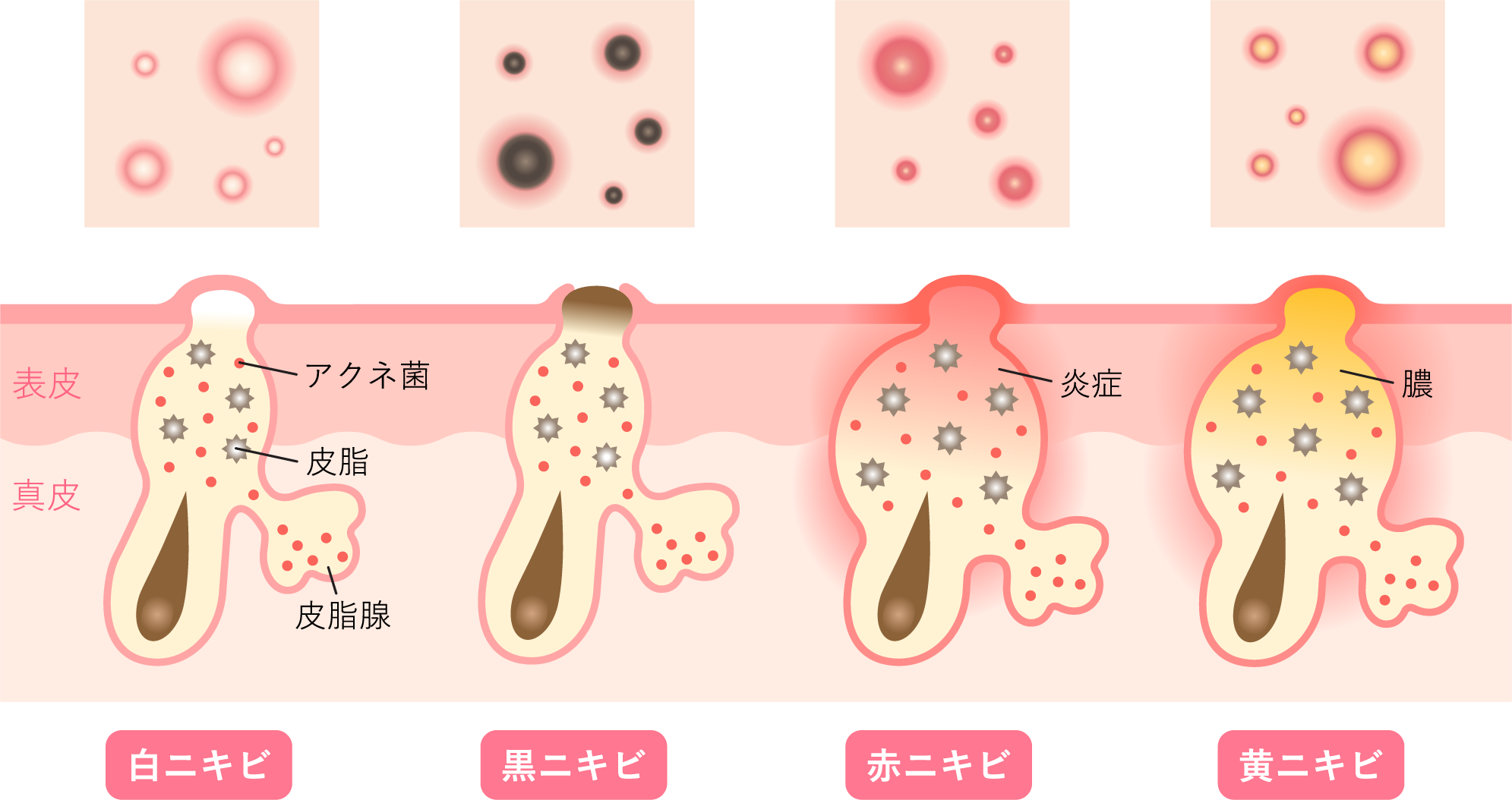 - ニキビが治っても赤みや跡が残る