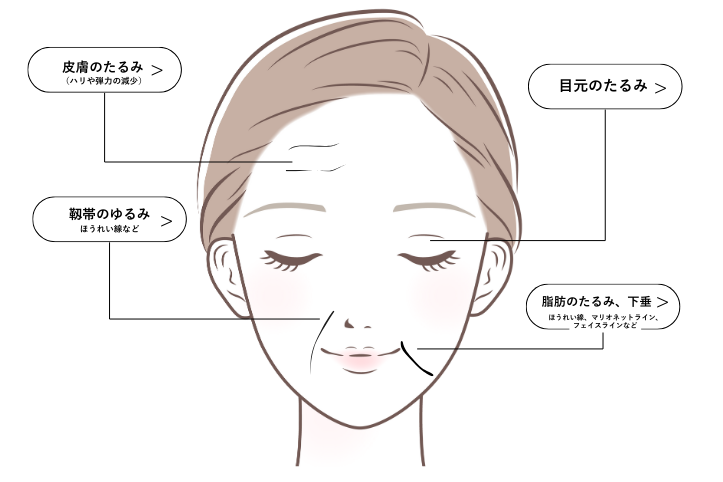- ほうれい線やマリオネットラインが目立つ